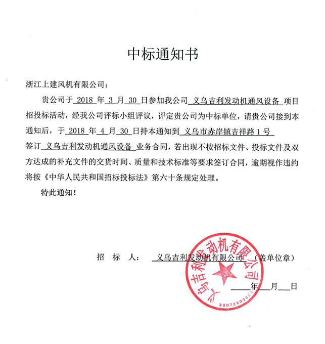 捷報(bào)頻傳,上建風(fēng)機(jī)為義烏吉利發(fā)動(dòng)機(jī)公司保駕護(hù)航