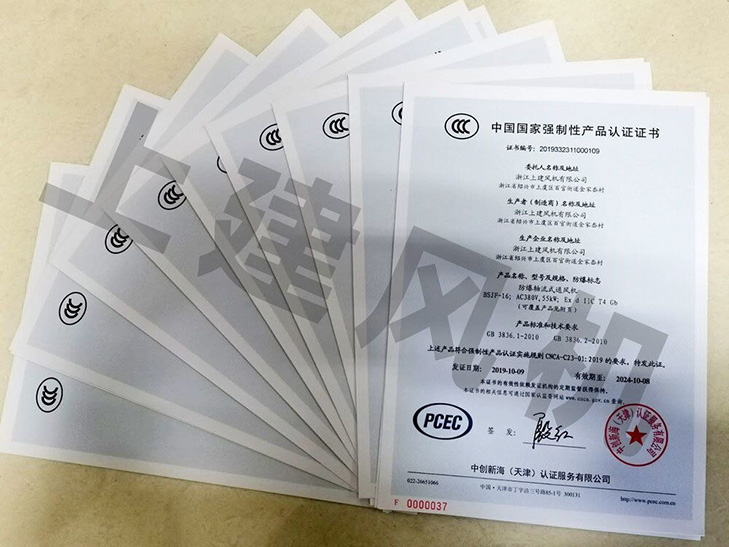 國(guó)內(nèi)首張防爆風(fēng)機(jī)3C證書(shū)花落上建公...