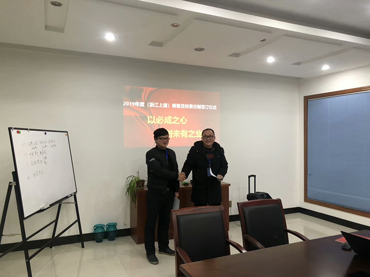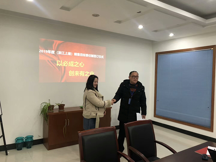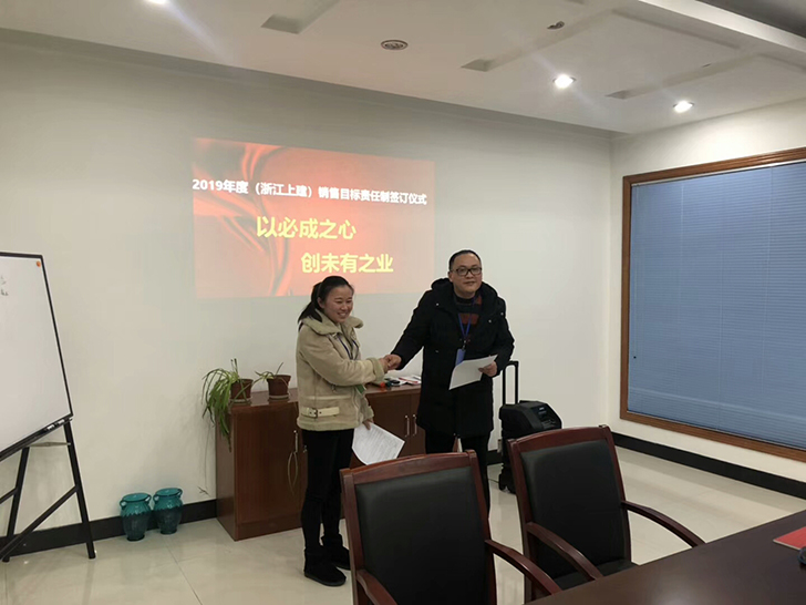 為保證公司2019年度經(jīng)營目標順利實現(xiàn),建立績效管理體制和激勵約束機制,強化企業(yè)執(zhí)行力,提升公司競爭力,2019年1月14日公司舉行了銷售目標責任制簽訂儀式。目的是通過這樣儀式,把責任形式確定下來,讓每位銷售員更加明確自身工作責任和壓力,增強意識,提高認識,推進公司各項工作在新的一年里更上一臺階。