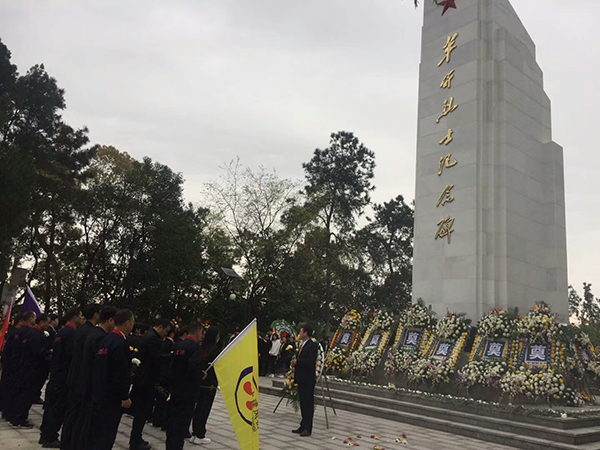 活動(dòng)中群體行政人員向紀(jì)念碑敬獻(xiàn)花圈,集體默哀1分鐘并繞紀(jì)念碑一圈為英雄們獻(xiàn)上心香一瓣、追思一朵、緬懷一片;告訴英雄們:祖國山河已無恙、人民英雄請安息。