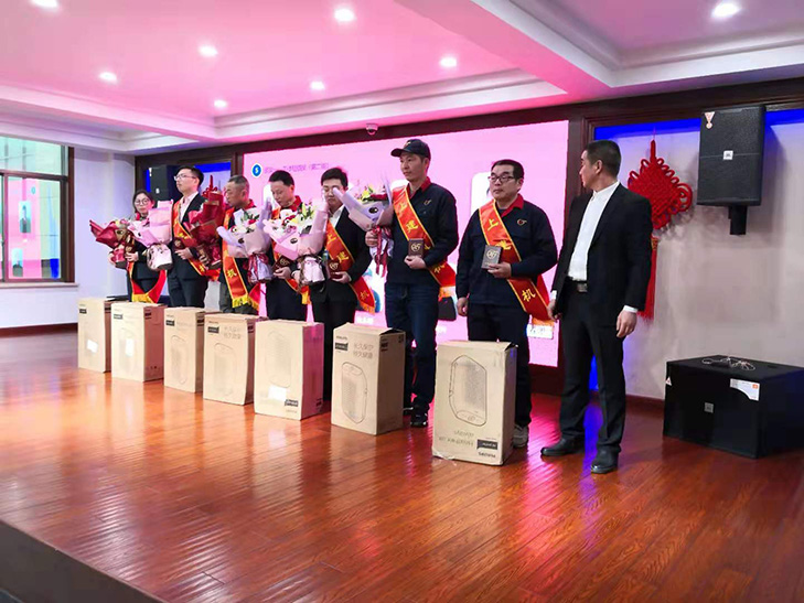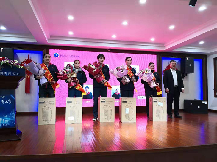 上午8點(diǎn)30分隨著上建CEO童海標(biāo)先生及其女兒童彤(主持人)共同開啟盛會(huì)鑰匙而拉開帷幕。隨后公司五大部門(經(jīng)管部、技術(shù)部、制造部、品管部、營銷部)各負(fù)責(zé)人先后作了年度工作總結(jié)及明年工作規(guī)劃的匯報(bào)。頒發(fā)了楊秀剛等十二位工作楷模獎(jiǎng);龍艷付等五位品質(zhì)守護(hù)獎(jiǎng);趙春才等五位特殊貢獻(xiàn)獎(jiǎng);鄭法根等六位銷售精英獎(jiǎng);歐起逢等兩位主人翁獎(jiǎng)以及突飛猛進(jìn)獎(jiǎng)和卓越團(tuán)隊(duì)獎(jiǎng)兩個(gè)集體獎(jiǎng)項(xiàng),個(gè)人先進(jìn)各獎(jiǎng)價(jià)值1180元飛利浦空氣凈化器一臺(tái),兩個(gè)團(tuán)隊(duì)各獎(jiǎng)勵(lì)現(xiàn)金3000元,以獎(jiǎng)勵(lì)他們?cè)谶^去的一年中在各自的崗位上所做出的貢獻(xiàn)與成績。