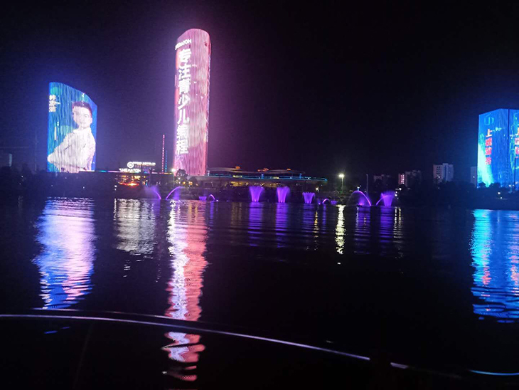 到了五點半,拉開燒烤的序幕,燒烤香味撲面而來,大鍋的羊肉看的讓人目瞪口呆,舉杯暢飲吧,大伙兒吃著烤羊肉,喝著啤酒,吹著微微江風,有說有笑,人人臉上推滿了笑容。隨著晚上七點半曹娥江音樂噴泉的開始,大家乘坐快艇來到了城市陽臺江中心,觀賞了美侖美奐的音樂噴泉,個別外來員工為美麗的上虞能成為自己第二故鄉(xiāng)而由衷的感到自豪,大家紛紛拿出手機拍下每一個絕侖的舜間。