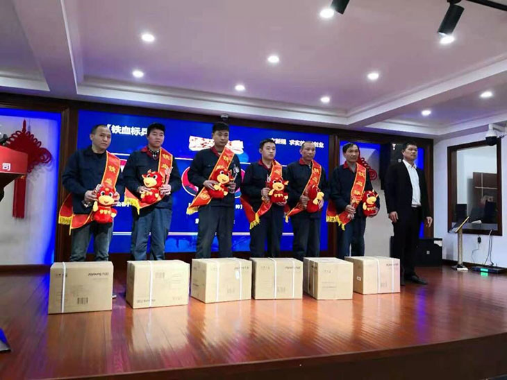 下午一時(shí)許,會(huì)議在2020年大事記回顧視頻播放中拉開(kāi)帷幕。首先由經(jīng)營(yíng)管理部負(fù)責(zé)人對(duì)2020年度的工作做了全面的總結(jié)與回顧,把不足之處進(jìn)行了概括和分析。并在2021年度工作要求中對(duì)20年的不足之處進(jìn)行了具體改進(jìn)作了明確要求。隨后,在我們吳大炮先生主持人幽默而又莊重的宣布下,一一揭曉了我們2020年度公司各項(xiàng)先進(jìn)個(gè)人和團(tuán)隊(duì),共有47位員工獲得了“鐵血標(biāo)兵”“設(shè)備美容師”“鐵面判官”“三八紅旗手”“服務(wù)之星”“品質(zhì)守護(hù)獎(jiǎng)”等榮譽(yù)。箱體車(chē)間團(tuán)隊(duì)和產(chǎn)銷(xiāo)管理團(tuán)隊(duì)分別獲得了“價(jià)值貢獻(xiàn)獎(jiǎng)”和“卓越管理獎(jiǎng)”兩個(gè)集體榮譽(yù)。個(gè)人先進(jìn)在獲得公司表彰后并獎(jiǎng)于每人價(jià)值1000元電飯煲一只,團(tuán)隊(duì)獲得公司頒發(fā)的獎(jiǎng)金。獲獎(jiǎng)個(gè)人與團(tuán)隊(duì)大家紛紛發(fā)表了感言,感謝公司在自己平凡的工作崗位上所付出的每一份努力得到了肯定和認(rèn)可,也再次表示在工作上會(huì)再接再勵(lì)。