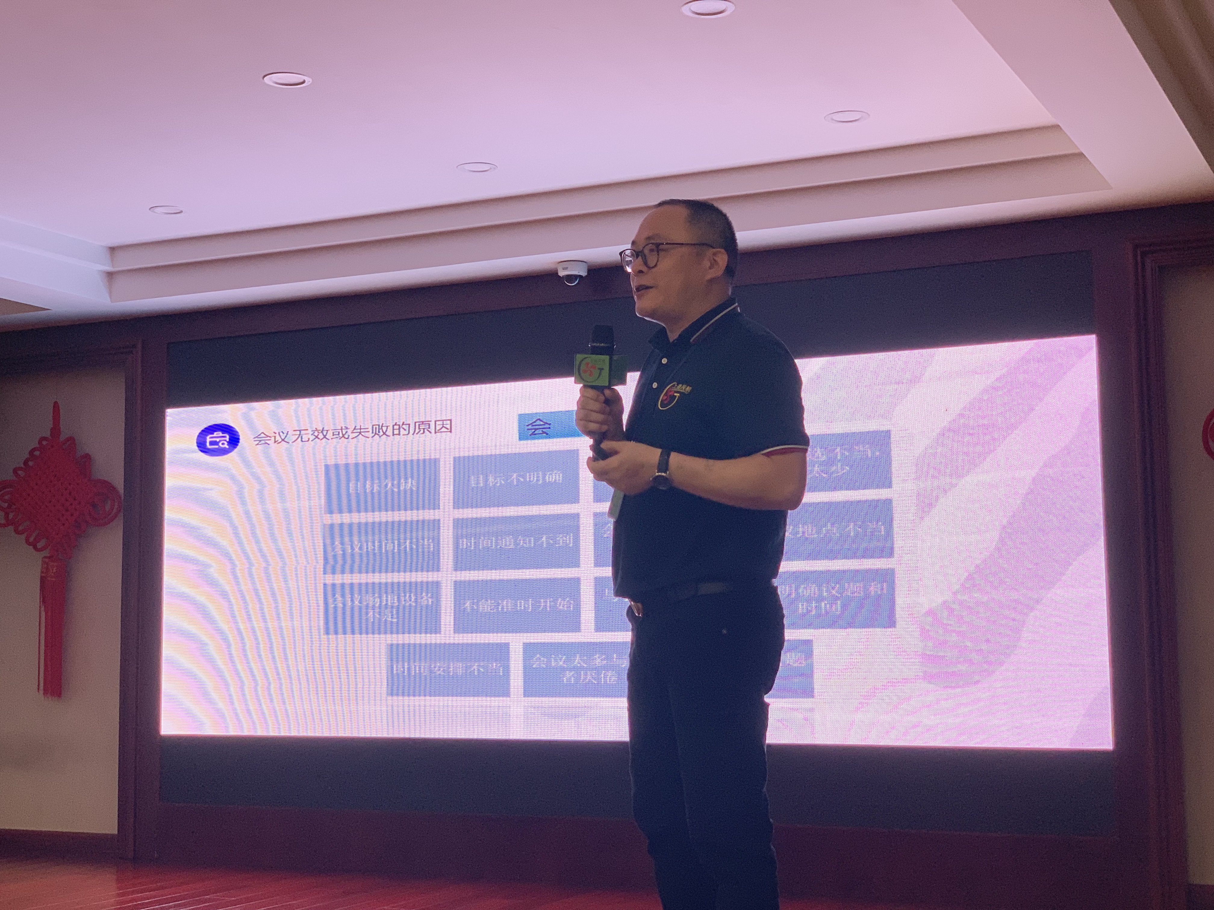 在培訓(xùn)課中沈老師講到:“目前公司‘會(huì)風(fēng)’存在效率低、時(shí)間長(zhǎng)等現(xiàn)象,希望各機(jī)構(gòu)能夠不斷提升會(huì)議效率,開(kāi)短會(huì)、講短話(huà),將高效會(huì)議精神執(zhí)行到位,并要求將重要會(huì)議精神、要點(diǎn)及時(shí)對(duì)外傳達(dá),促進(jìn)會(huì)議決策決議的有效落地。”