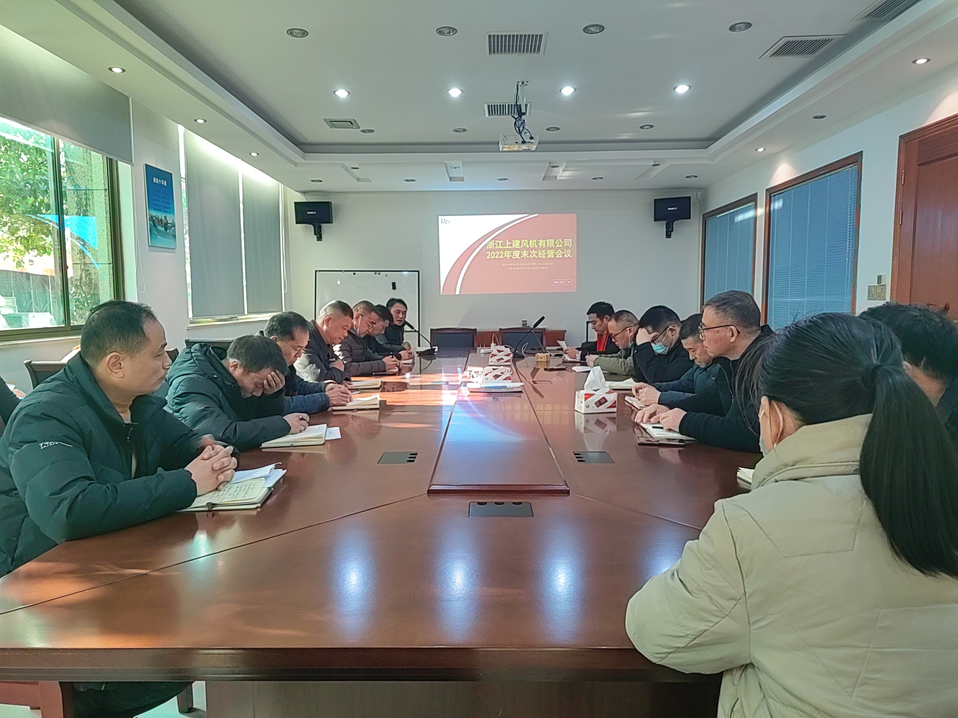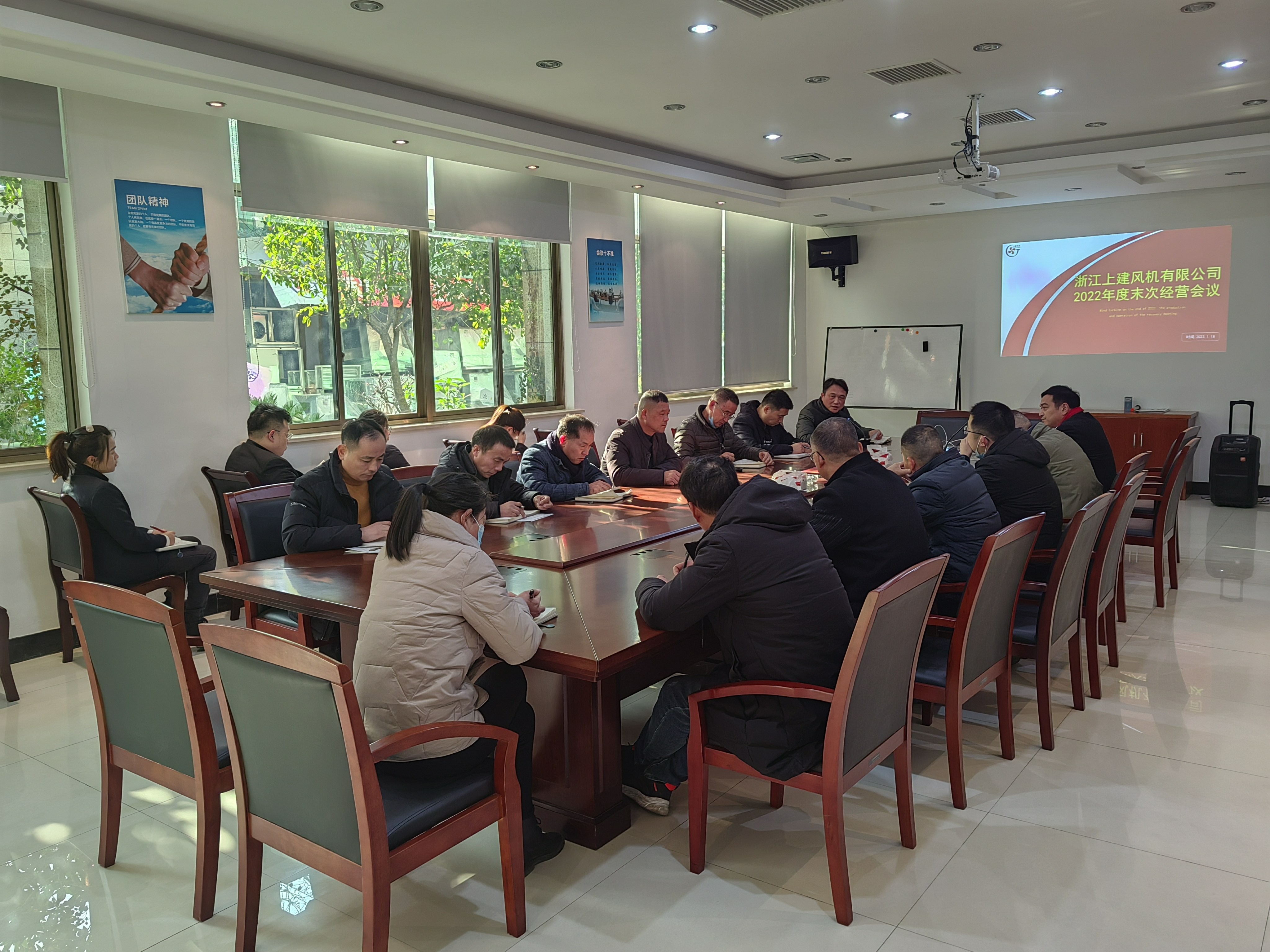 會議最后童海標總經(jīng)理做了重要講話,他充分肯定了各部門和各單位的匯報成果。童總說道:“2022年面對復雜、嚴峻的外部形勢,在全體員工的不懈努力下,各項重點工作才得以有力推進,公司新廠房投產(chǎn)進入倒計時,公司獲評區(qū)長質(zhì)量獎,也是對企業(yè)生態(tài)很好的一次檢閱,應(yīng)收賬款與風險管控有效控制,市場地位逐步提升,榮獲多個省部級獎項,更重要的是我們的團隊得到外界的一致認可,公司經(jīng)營質(zhì)量在持續(xù)高質(zhì)量發(fā)展!。”同時他也指出2023年,上建風機將全面貫徹落實“磨礪、聚變,二次創(chuàng)業(yè)”經(jīng)營發(fā)展理念。提出六個期望與要求,第一“戰(zhàn)略驅(qū)動,客戶導向”,必須要站在顧客視角與立場去思考與解決問題;第二要注重過程管理、目標管理;第三加強文化引導與統(tǒng)一,將上建的精神和價值觀融入到工作當中,生活當中;第四各部門領(lǐng)導要持續(xù)提升自己,修煉領(lǐng)導力;第五基于簡單文化背景下的崗位勝任力模型,能者上庸者下,唯才是舉,為能是用;第六要保證公平、公正的考核。