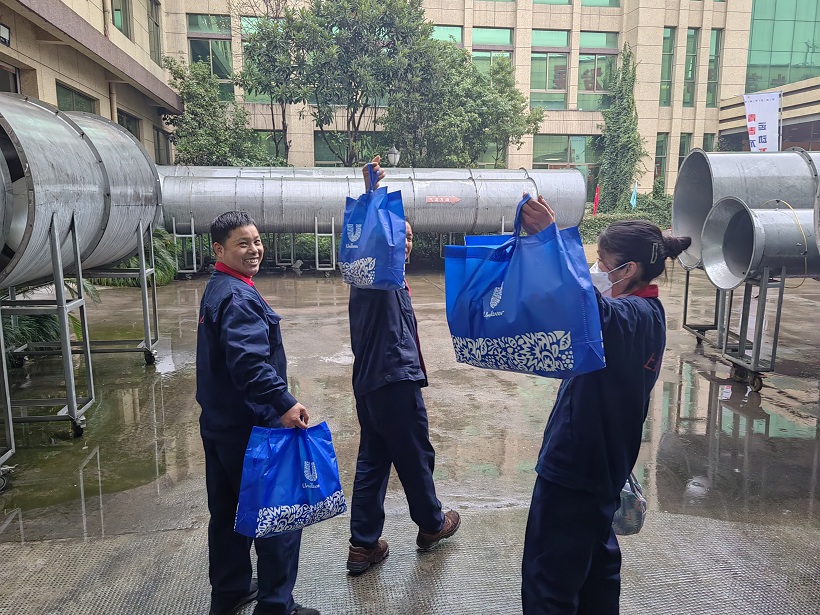 為鼓舞員工士氣,激發(fā)員工工作干勁,公司福利激勵(lì)可謂是一波接著一波。2023年2月13日開工僅僅一周,上建風(fēng)機(jī)的小伙伴就收到了來自公司的深切慰問。一袋袋干貨大禮包送到了員工的手中。