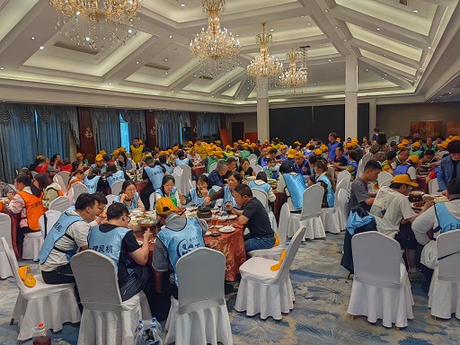 不知不覺中天色漸晚,經(jīng)過一天的旅途,大伙都有了一絲疲憊,肚子也餓了起來。有的伙伴剛剛想叫餓,突然問道陣陣誘人的香味。哦,原來是公司早就為我們準(zhǔn)備好了晚餐,整整20桌桌上擺滿誘人的飯菜!大伙們在晚宴間飲酒作樂,載歌載舞,個個都吃的心滿意足。