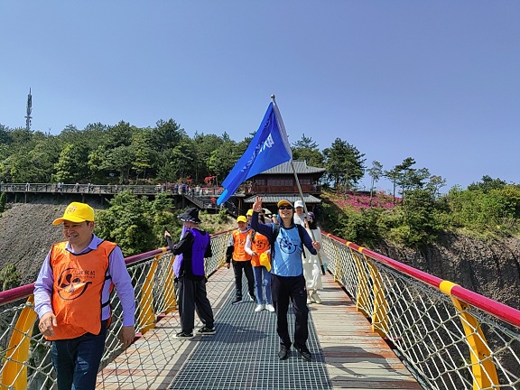 為讓大家充分游覽神仙居但不至于太累,到了景區(qū)后我們先是坐南天門索道上山,在導(dǎo)游的引領(lǐng)下游覽了南天橋,如意橋等等,我們身穿六彩拓展服,整個山頭霎時間被上建風(fēng)機(jī)給“占領(lǐng)”啦!