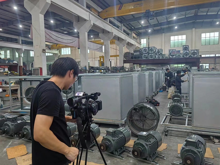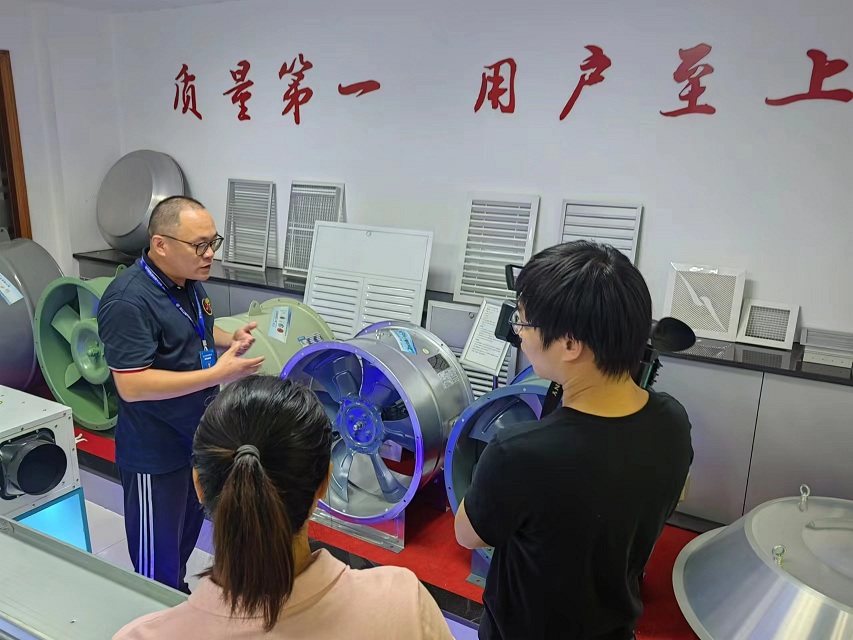 最后采訪記者進(jìn)入車間進(jìn)行拍攝,作為風(fēng)機(jī)市場(chǎng)最早的開(kāi)拓者之一,我司目前已經(jīng)有了完善的產(chǎn)品鏈以及未來(lái)幾年內(nèi)的產(chǎn)品規(guī)劃。目前市場(chǎng)中的HTFC系列柜式離心風(fēng)機(jī),SJF系列高效節(jié)能軸流風(fēng)機(jī)和RTC系列新型屋頂風(fēng)機(jī)都受到了廣泛好評(píng),消防排煙防火閥、多葉送風(fēng)口、消聲器等產(chǎn)品都有生產(chǎn)線,精湛的工藝與高效的生產(chǎn)得到采訪記者的嘖嘖稱贊。