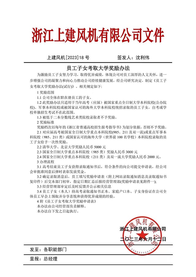 此項獎勵的目的是為了激勵員工子女勤奮學習、積極進取,回報父母,報效社會,充分展示了公司以人為本、關愛員工、重視教育、鼓勵上進的良好風尚,得到了廣大員工積極擁護。公司表示將一如既往地對公司員工力所能及的幫扶和資助。