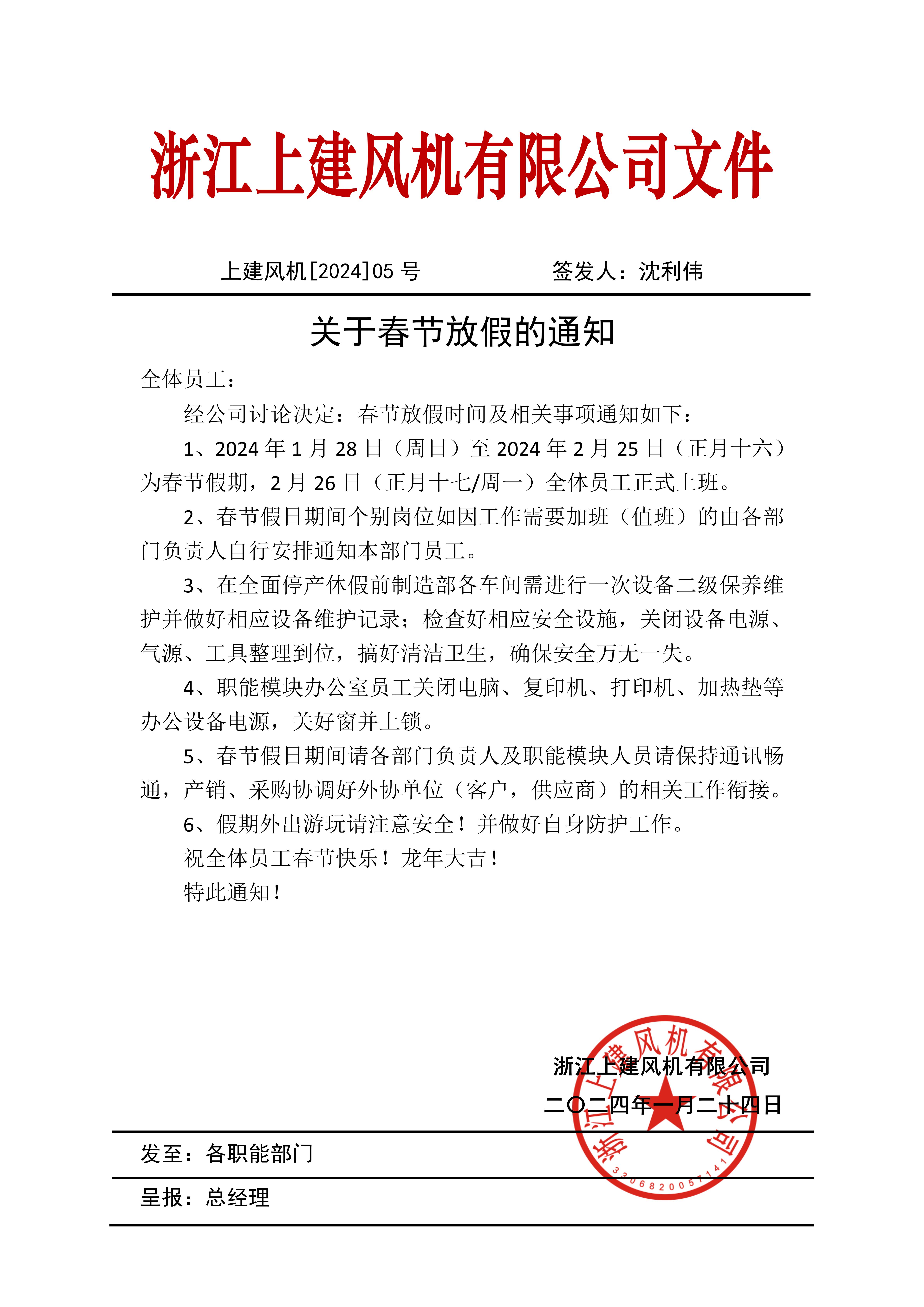 經(jīng)公司研究決定,現(xiàn)將我司春節(jié)放假具體安排通知如下∶