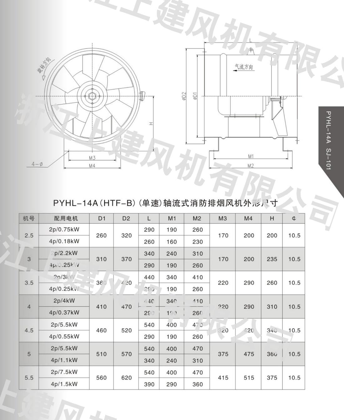 PYHL-14A(HTF-B)系列軸流式消防排煙風(fēng)機(jī)